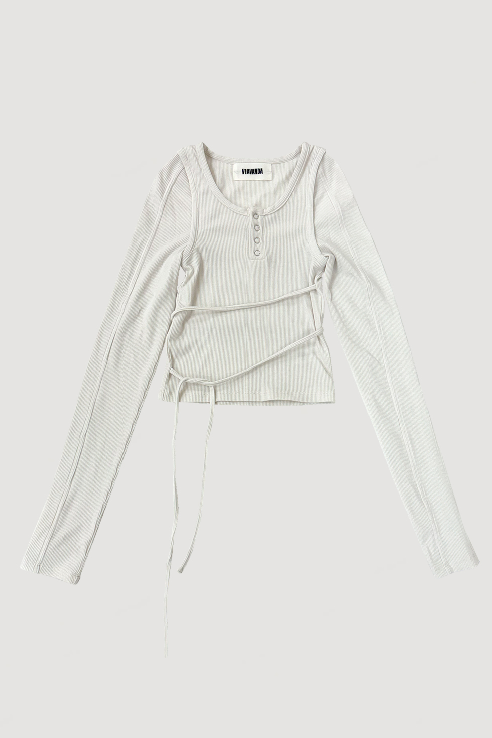 ウエストの紐などのアクセントがありつつシンプルなムードで着用頂けます。