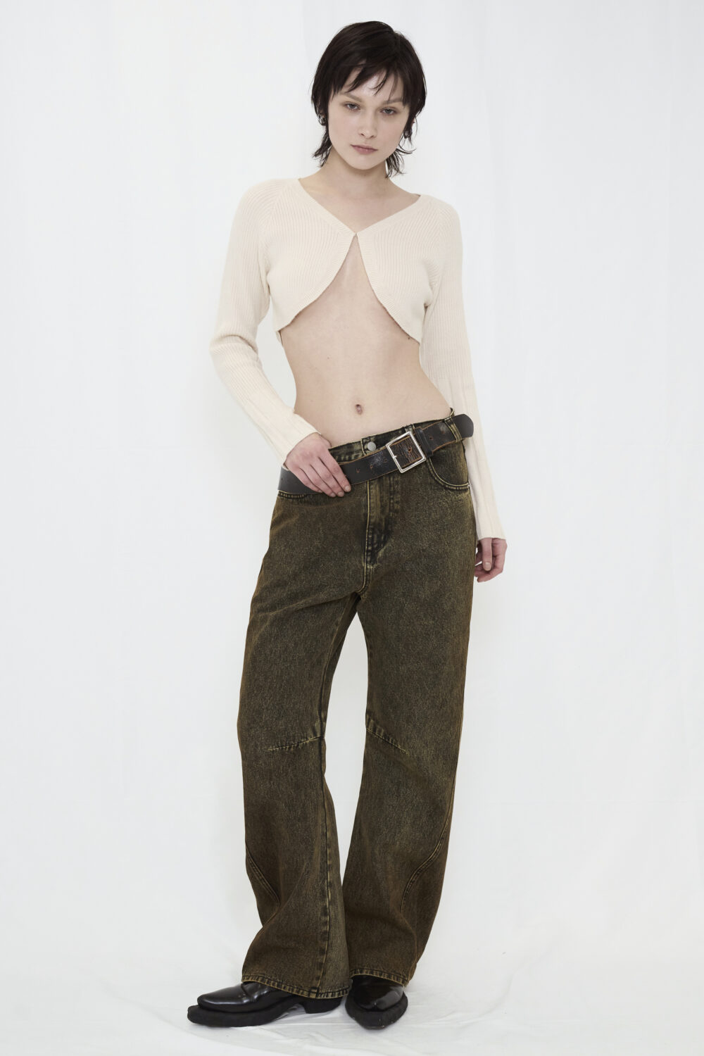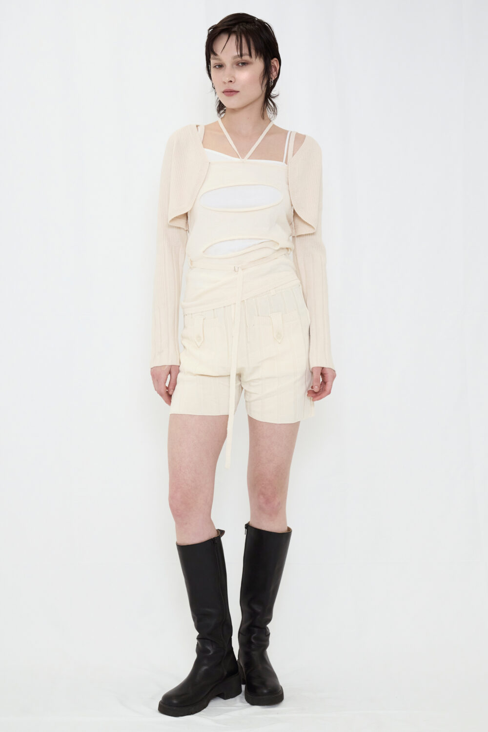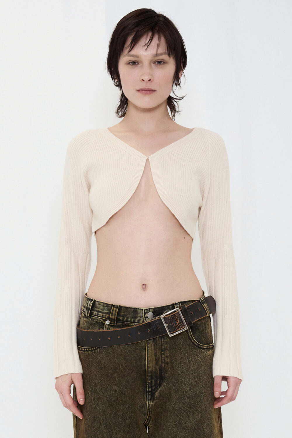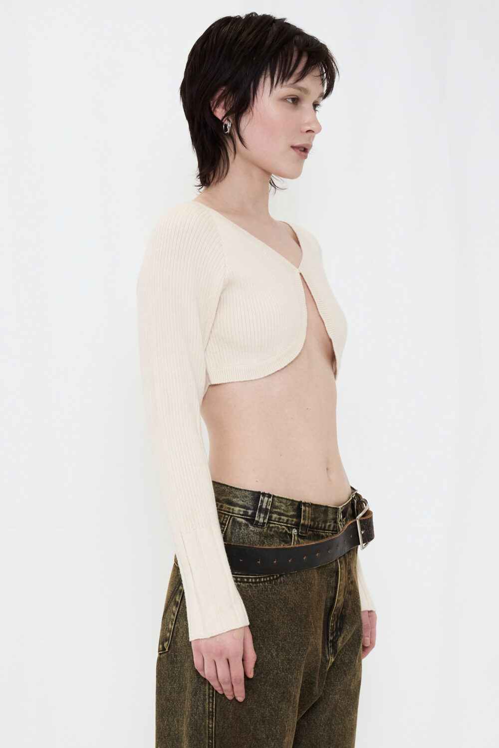 シンプルでありながら洗練された雰囲気を持つニットボレロ。